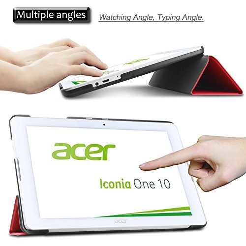 Made of high quality synthetic leather PU leather, will help you keep your Tablet well protected and free from scratches, scuffs and damage. Perfect cutouts for the camera, speakers, stand and other ports. Built-in stand with multiple viewing angles (typing and watching). 100% brand new, lightweight, ultra slim,unique ,decent design.Easy to place inside a bag or carry alone, A MUST HAVE for Acer Iconia One 10 B3-A20 Tablet owners!!!