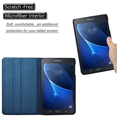 Made of high quality synthetic leather PU leather, will help you keep your Tablet well protected and free from scratches, scuffs and damage.Designed with magnetic auto wake/sleep feature and perfect cutouts for the camera, speakers, stand and other ports. Built-in stand with multiple viewing angles (typing and watching). 360° rotating, you can enjoy a full range of play. Easy to place inside a bag or carry alone, A MUST HAVE for Samsung Galaxy Tab A 10.1 inch (2016) Tablet-PC owners!!!