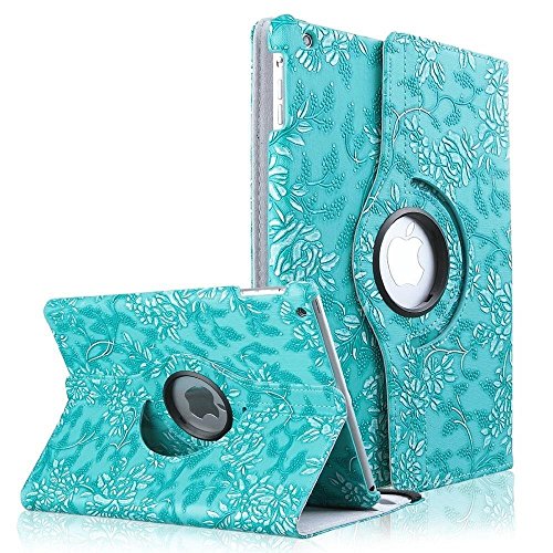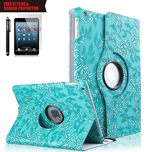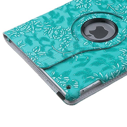 TabPow [360 Degrees][Flip][Smart Case] Grapevine Turquoise PU Leather Flip Case [Magnetic Closure] Smart Cover With Stand [Auto Sleep/Wake] For Apple iPad 2/3/4