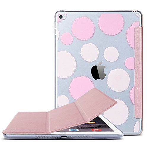 Folio Slim Smart Case Cover with Trifold Stand and Magnetic Auto Wake & Sleep Function for iPad Air 2 / iPad 6th Generation. It has a stylish design: Choose more than ten fashionable colors to enable you to match with different styles in different occasions and make you look perfect every day. Back with the Cute polka dot Pattern vibrant colors on the interior and exterior your iPad Air 2 will look electrifying. Built-in front and back covers will protect your iPad Air 2 from every angle; the semi-transparent back cover specially treated with matte finish will show the perfect shape of your iPad Air 2, and prevent fingerprints and scratches at the same time. Built-in magnet to control the sleep/wake function, the magnet also keep front cover close firmly with the iPad Air 2 screen when you close the cover and put it in your bag, no more worry about scratches on the iPad Air 2 screen or wake up of your iPad Air 2. And the trifold stand provides convenience for typing, watching videos etc. PLEASE NOTE: Colors shown in pictures may slightly differ from actual product due to lighting and color settings.