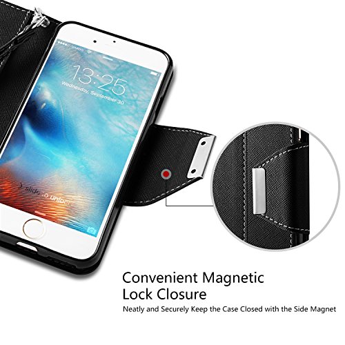 iPhone 6 6S Wallet Case with Stand, Magnetic Closure and Strap Leather Case