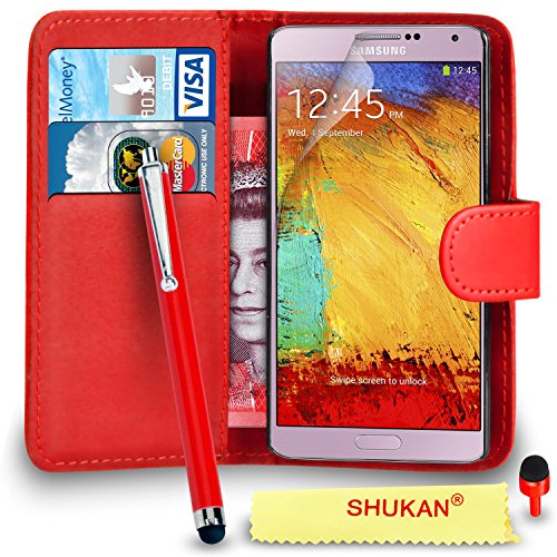 There are a compartments where bank cards, or even your oyster card, can be kept and secret pocket for bank notes making the case practical as well as stylish and functional. You will have full access to all of the device ports, slots and features with the case on. It comes with Big Touch Stylus Pen + RED 2 IN 1 Dust Stopper and exclusive SHUKAN® Polishing Cloth for your Samsung Galaxy Note 3.