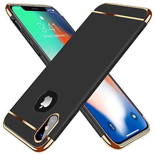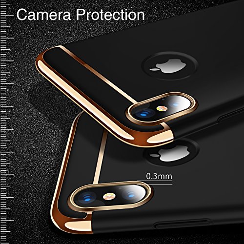 - [Stylish Design] 3 in 1 hybrid iPhone XS slim case, 2 golden electroplate frames combine with hard plastic back bring you a unique iphone XS cover